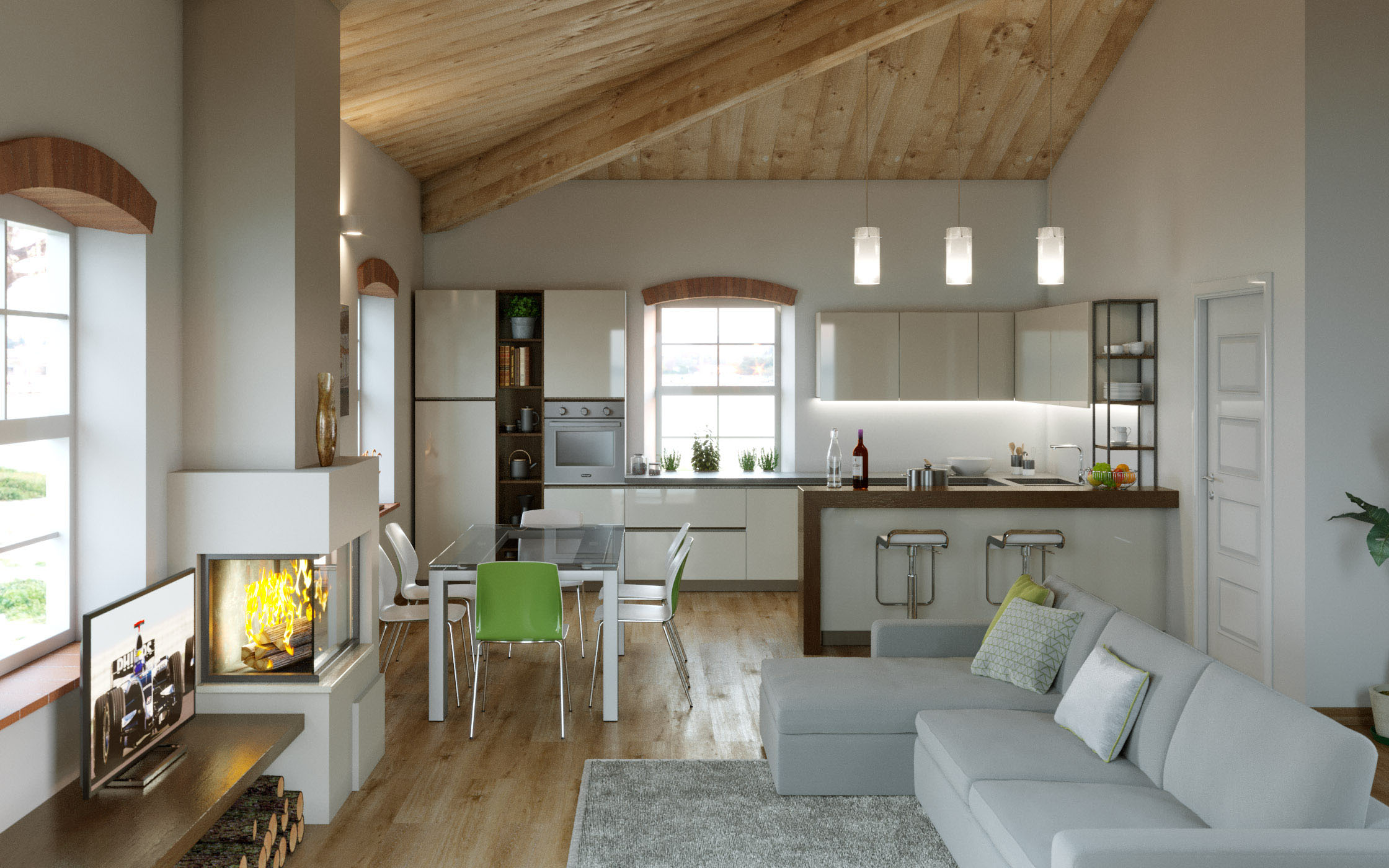 Rendering fotorealistici di interni ed esterni, rappresentazione di complementi di arredo per cataloghi e pagine web